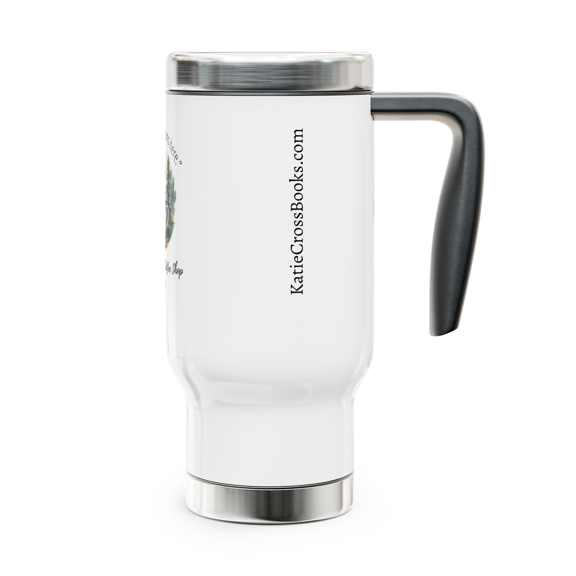 A travel mug that brings a quiet, forest-side pause to every commute. This 14 oz stainless steel mug with a comfortable handle keeps your coffee warm and your hands cool. The wraparound glossy print shows a moody woodland scene and hand-lettered café name, giving it the look of a well-loved cabin find. It slips into backpacks or sits steady on a desk, steadying your morning with familiar warmth and rustic charm. Built for slow sips on busy days, it’s the kind of mug you reach for when you want a little calm — whether you’re headed to work, running errands, or settling in for an evening of journals and playlists.