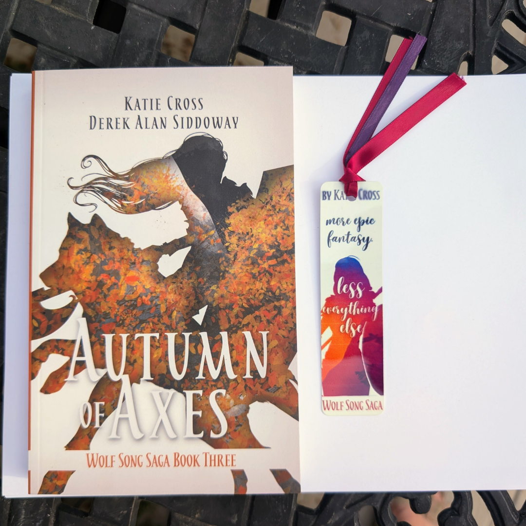 This premium metallic and magnetic bookmarks features a custom design inspired by the novel series the Wolf Song Saga, set in the world of Vigard, as written by Derek Alan Siddoway and Katie Cross