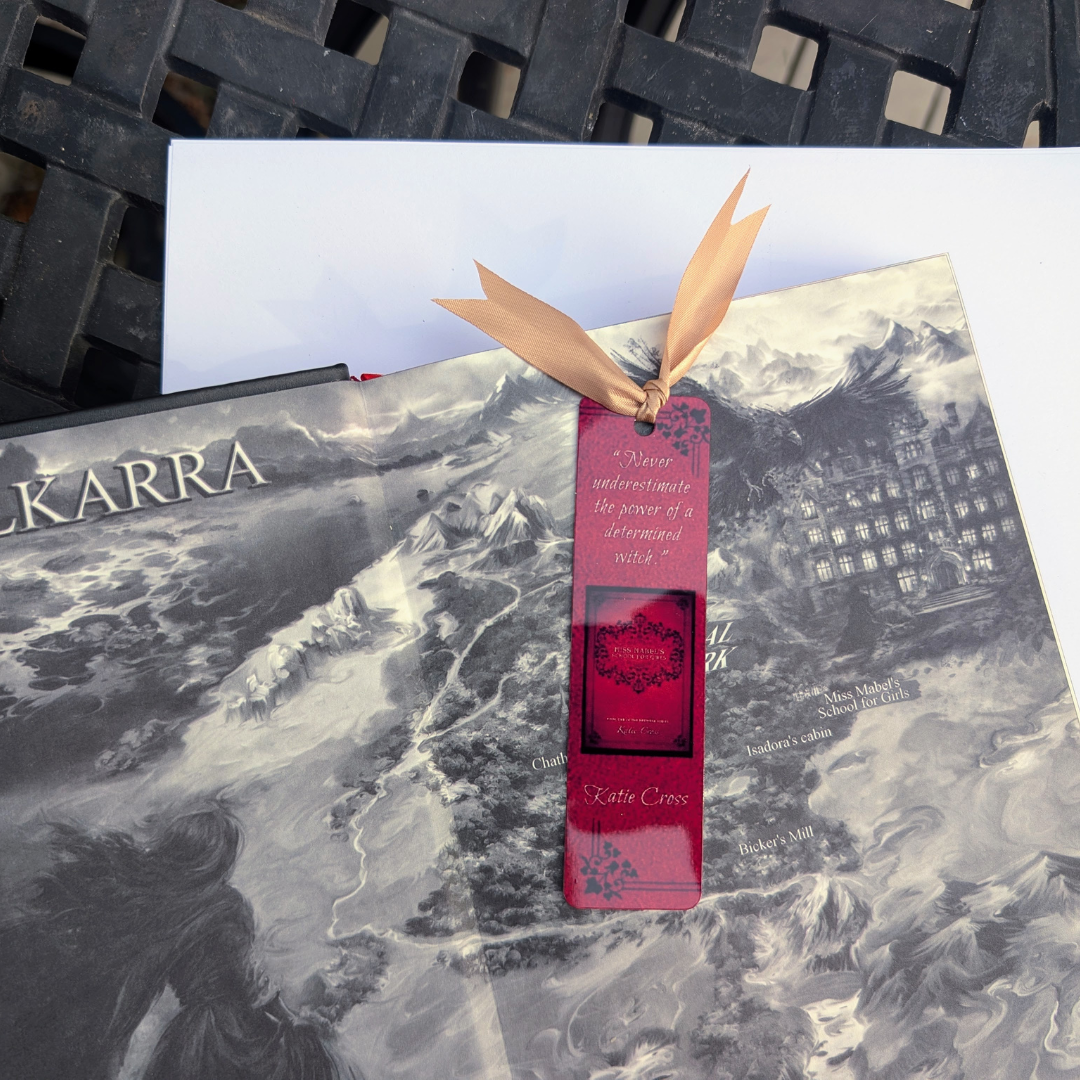 This premium metallic bookmark features a custom design inspired by Miss Mabel's School for Girls, the first book in the Network Series.